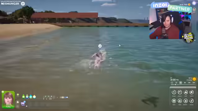 06:12:08Die Gruppe richtet eine PC-Ecke für die Arbeit der Sims ein, mit einem Schreibtisch und einem Stuhl. Sie erkunden Möbeloptionen und diskutieren die Einrichtung. Der Streamer erwähnt fehlende Badewannen und das Schwimmen im kalten Meer. Die Möglichkeit, Haustiere in zukünftigen Updates zu erhalten, wird als Erwartung geäußert, obwohl dies noch nicht implementiert ist. Die Tauchmechanik wird als interessant, aber noch nicht vollständig umgesetzt beschrieben.