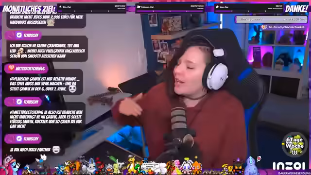 02:07:30Das eigene PC-Setup wird thematisiert, wobei die Grafikkarte als Schwachstelle für InZOI identifiziert wird. Es wird erklärt, dass der aktuelle PC durch ein Community-finanziertes Dodo-Goal ermöglicht wurde, da der alte PC nicht mehr ausreichend war. Persönliche Präferenzen bezüglich Grafik werden diskutiert, wobei betont wird, dass das Spiel Spaß machen muss und 4K-Streaming nicht als notwendig erachtet wird. Es wird erwähnt, dass der Hype um 4K-Streams nachlässt und 1080p mit 60 FPS als ausreichend angesehen wird. Es wird über frühere Erfahrungen mit InZOI gesprochen, wo das Spiel auf maximalen Grafikeinstellungen flüssig lief, da die Leistung über die CPU lief, was sich später änderte und die Grafikkarte stärker beanspruchte.