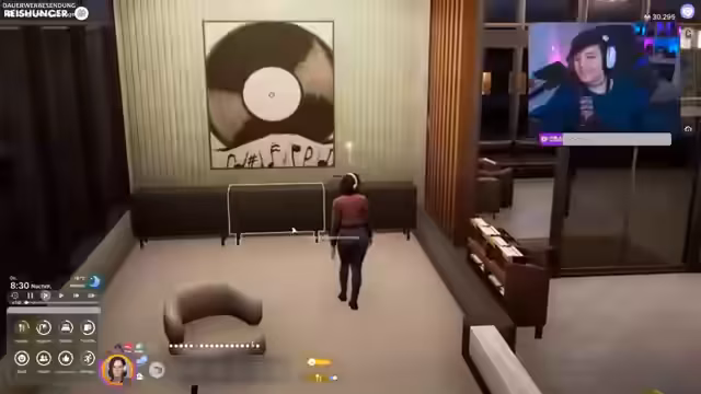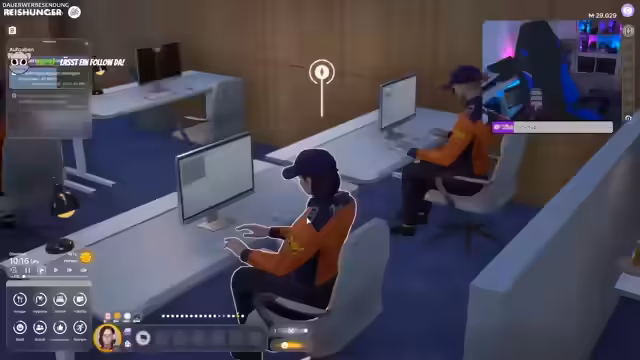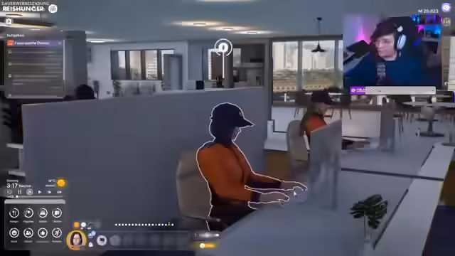 05:23:19Nach einer erfolglosen Suche nach einer Polizeistation erkundet der Streamer die Bank. Währenddessen wird im Spiel ein erstes Ambitionsziel erfolgreich erreicht, was eine Belohnung in Miaumünzen und einen motivierenden Text zur Folge hat. Im Inneren der Bank findet er Angestellte, eine VIP-Lounge und einen Tresor, doch der Versuch, die Chefin anzupöbeln, scheitert, da sie sich nicht aktiv ansprechen lässt.