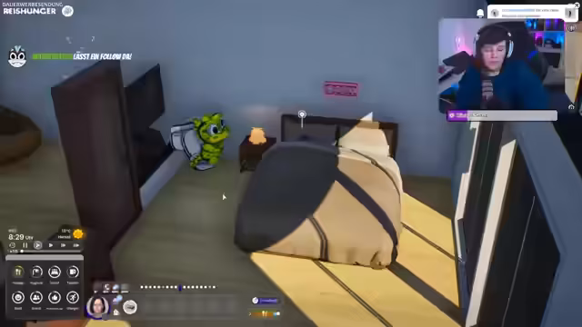 08:02:34Aufgrund technischer Probleme und instabiler Performance des Spiels, möglicherweise verursacht durch den PC, wird der Stream für beendet erklärt. Für den nächsten Sonntag ist eine Fortsetzung um 8 Uhr angekündigt, bei der die Datingshow mit Winnie im Mittelpunkt stehen wird. Der Streamer bedankt sich bei der Community für das Zusehen und die Teilnahme und bittet um einen schönen Rest des Samstags. Der Stream endet mit einem Raid zu einem anderen Kanal.