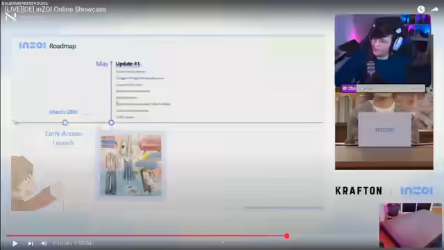 00:23:35Ein zentraler Punkt des Streams ist das Drops-System für InZoi. Der Streamer sucht nach der Anleitung und bittet die Community um Hilfe, da diese im Chat nicht auffindbar ist. Anschließend wird eine detaillierte Roadmap für die Entwicklung von InZoi vorgestellt. Im Mai sind Updates wie das Adoptionsystem, neue Outfits und Möbel, Build-Mode-Verbesserungen und In-Game-Cheat-Codes geplant. Für August sind Geister, Schwimmen und Pools sowie eine neue inspirierte Insel angesetzt. Im Dezember wird ein Erinnerungssystem und die Möglichkeit zum Umziehen in andere Städte erwartet.
