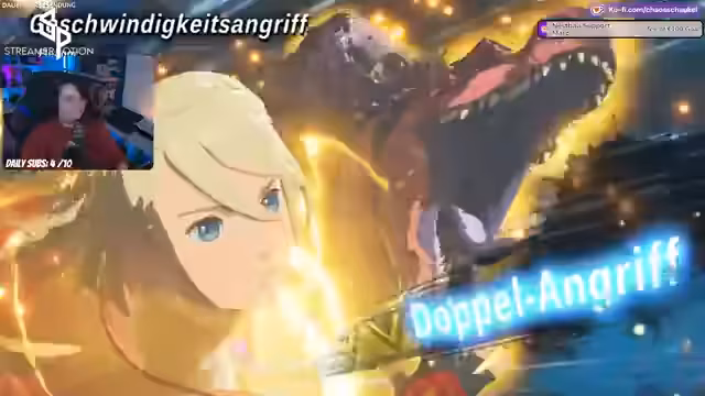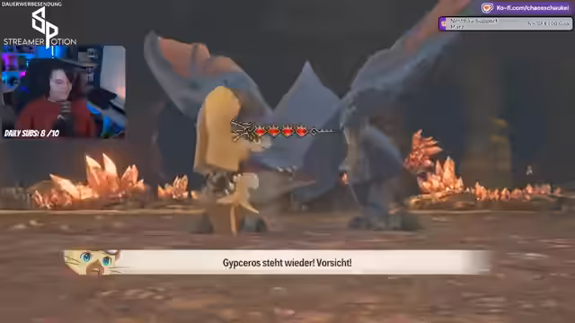 00:45:59Der Streamer geht zum Gameplay von Monster Hunter Stories 3 über. Er erwähnt, dass er und sein Team bei den Quests ihrer Teammates helfen werden. Zurzeit läuft eine Aktion, bei der Zuschauer für ein Sub ein spezielles Chat-Abzeichen erhalten – eine kleine Feline-Katze. Prime-Subs werden für diese Aktion ausgeschlossen. Der Streamer gibt Tipps zum Gameplay und spricht über seine Schwierigkeiten, sich an die Angriffe der Monster zu erinnern, wenn er längere Zeit nicht gespielt hat.