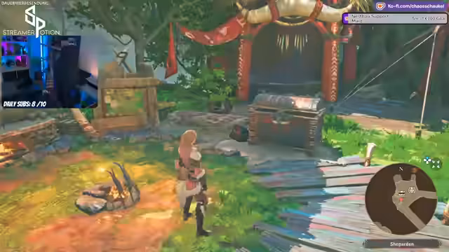 05:16:45Nach der Story werden die Protagonisten offiziell als Sünder abgestempelt und dürfen nicht mehr in ihr altes Schloss zurückkehren. Sie werden in einem neuen Dorf willkommen geheißen, das jedoch noch gesperrt ist. Das Freischalten des Dorfes erlaubt es dem Streamer, Rüstungen zu craften, neue Waffen zu betrachten und die neuen Outfits seiner Begleiter anzusehen. Er entscheidet sich, die neu gecraftete Rüstung zu tragen.