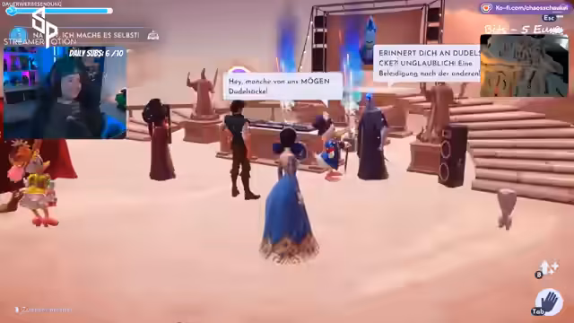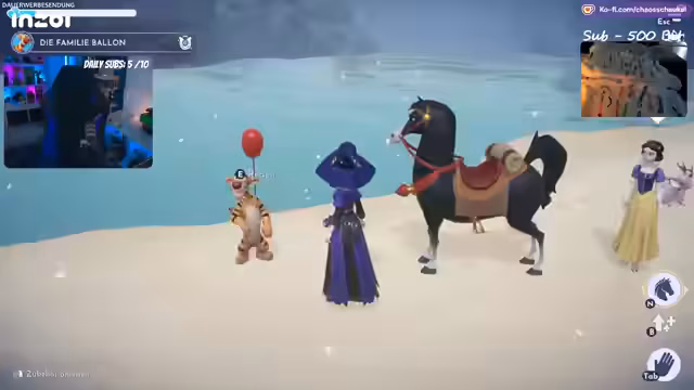 01:38:34Nach dem intensiven Gespräch über die bevorstehende Geburt wechselt der Stream zum Spiel Disney Dreamlight Valley. Die Streamerin erkundet ihr virtuelles Tal, bemerkt zahlreiche neue Inhalte und Charaktere, die seit ihrem letzten Besuch hinzugekommen sind. Sie muss neue Gebiete freischalten, verpasste Charaktere wie Schneewittchen einholen und die umfangreichen Neuheiten des neuesten DLCs, wie die schwebenden Inseln, erkunden.