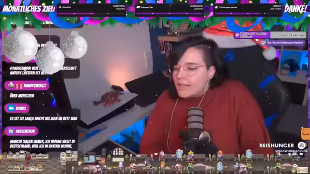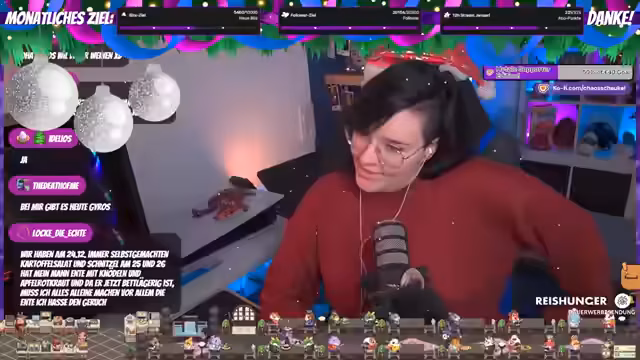 03:10:20Der Streamer bereitet sich auf den Stream vor und teilt persönliche Geschichten, darunter Erinnerungen an selbstgemachtes Sauerkraut aus der Kindheit und das vegetarische Gyros-Produkt, das es nicht mehr gibt. Es wird über die bevorstehenden Weihnachtsfeiern gesprochen, bei denen traditionell am 24. Dezember Kartoffelsalat und Schnitzel sowie am 25. Dezember Ente mit Knödeln und Apfelrotkohl serviert werden. Der Streamer erwähnt, dass die Feiertage 2026 entspannt verlaufen sollen, und teilt Details zum Frauenarztbesuch, bei dem eine Urinprobe abgegeben werden musste, was aufgrund der Schwangerschaft schwierig war. Zudem wird eine laufende Umfrage vorgestellt, in der die Zuschauer abstimmen können, ob sie lieber Sunhaven spielen oder etwas anderes machen möchten.