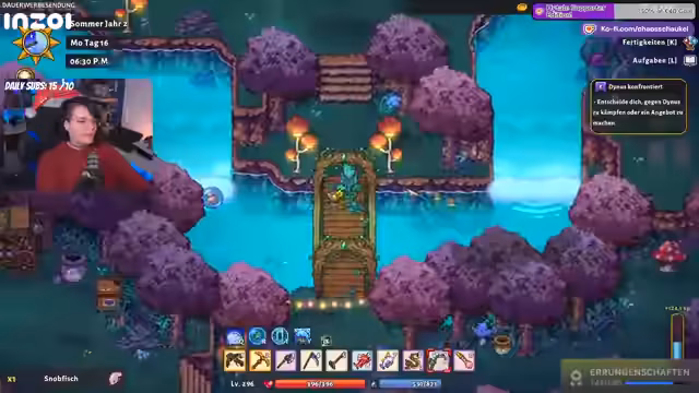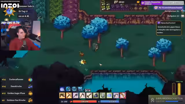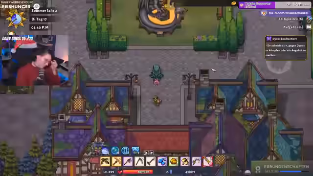 03:48:36Der Streamer betritt die Mine in Sunhaven und nutzt Schlüssel, um neue Ebenen freizuschalten. Er erwähnt, dass er zu schwach für einen Kampf gegen den Monddrachen ist und sich stattdessen auf das Schmieden von Schlüsseln konzentriert. In der Arena versucht er, einen Level-50-Gegner zu besiegen, scheitert aber aufgrund der hohen Stärke des Gegners. Es wird über die Verbesserung der Übersetzung von Sunhaven gesprochen, die mittlerweile besser geworden ist, und über die Pläne, das Museum weiter auszustatten.