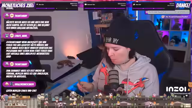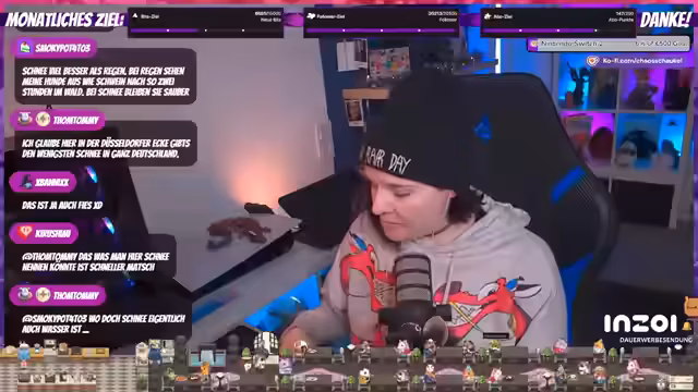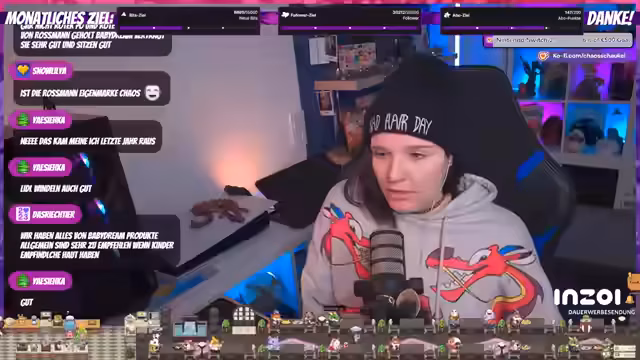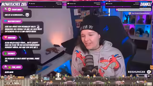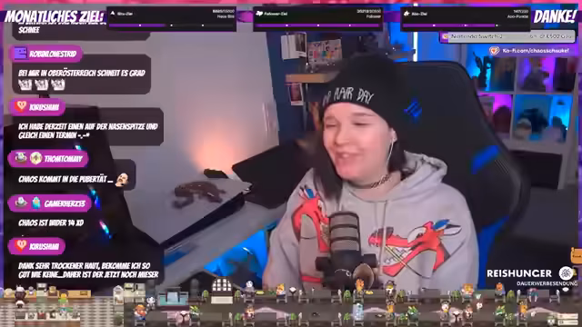 02:59:57Die Streamerin unterhält sich über die Frequenz ihrer Streams, wobei sie erwähnt, dass jemand anderes fast Vollzeit streamt und sie 'ersetzen' könnte. Sie fragt sich, ob es bereits Spieler mit dem Maximallevel 45 gibt, da sie viele mit coolen Mounts sieht. Es wird auch über das Aussehen mit Mützen gesprochen und wie man damit 'cool' aussieht, was zu einer humorvollen Selbstbeschreibung als 'Assi-Braut aus dem Free-TV' führt. Ein Zuschauer wird für seinen 'Reset im zehnten Monat' gedankt, was auf ein wiederkehrendes Abonnement hinweist. Die Streamerin teilt persönliche Gedanken über das Management ihrer Haare und die Auswirkungen der Schwangerschaft auf das Haarwachstum und die Körperbehaarung, was zu einem Friseurtermin vor Weihnachten führt, um 'hübsch' auszusehen.