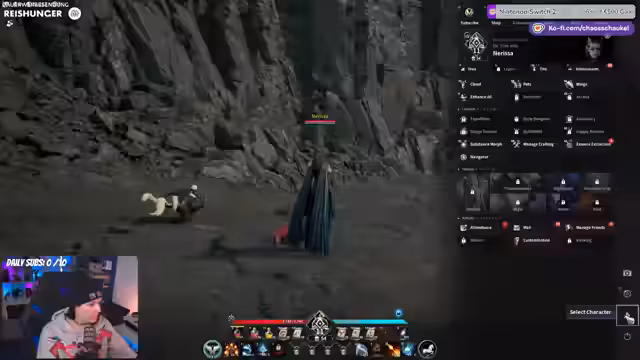01:37:48Nach technischen Vorbereitungen und dem Schließen des Cafés beginnt das Spiel Aion 2. Die Streamerin ist erleichtert, endlich aus dem Tutorial in die Open World zu kommen und mit anderen Spielern interagieren zu können. Nach anfänglichen Schwierigkeiten mit der Steuerung und der Flugmechanik erkundet sie die Umgebung. Sie sammelt Federn und testet die Mount-Systematik, indem sie ein Krokodil besiegt und als Reittier nutzt. Der Ping ohne Exit-Lag wird als Problem identifiziert.