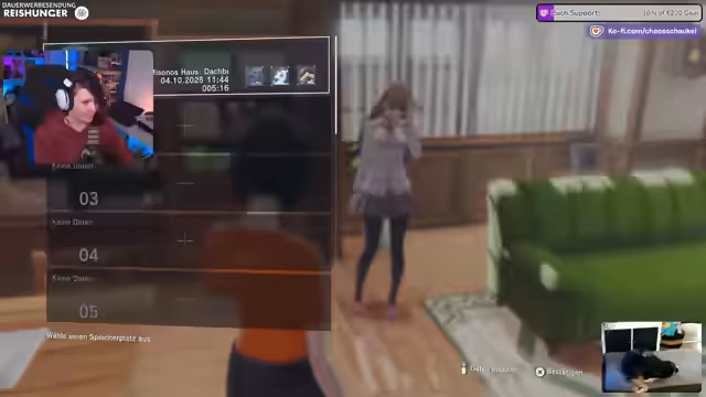 03:53:59Der Streamer kehrt in die Menschenwelt zurück, die sich im Dunkel einfängt. Er kehrt in das Haus des Detektivs zurück und erkundet den Dachboden. Hier findet er Gegenstände wie Musiknoten, Herzen und Bekleidung. Das Tragen neuer Kleidung durch die Spielfigur wird thematisiert. Die 'Agentenfähigkeiten' werden vorgestellt, die durch Treuepunkte freigeschaltet werden können und Attribute wie EP, Angriff oder Verteidigung von Digimon steigern. Der Streamer investiert in diese Fähigkeiten.