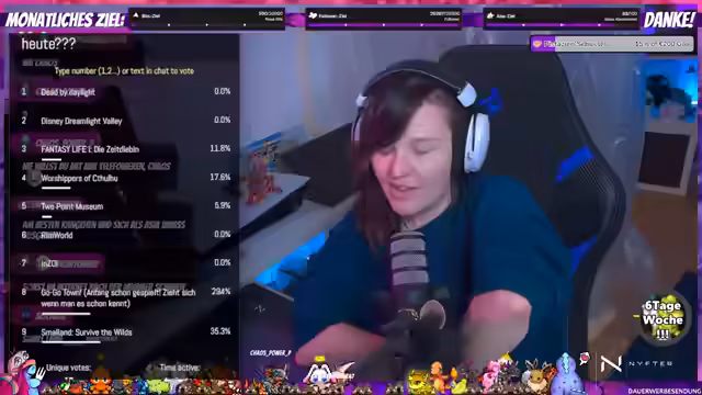 01:07:37Der Streamer stellt eine Vielzahl von Spielen vor, die für den Stream zur Auswahl stehen. Dazu gehören Dead by Daylight, Disney Dreamlight Valley, Fantasy Live, Die Zeitdiebin, Warships of Cthulhu, Two Point Museum, Rimworld, Smalland, Go Go Town und weitere. Viele der Spiele werden mit ihren Besonderheiten beschrieben, wie zum Beispiel das asynchrone PvP-Game Dead by Daylight oder das Animal Crossing-ähnliche Disney Dreamlight Valley, das regelmäßig neue Bewohner erhält.