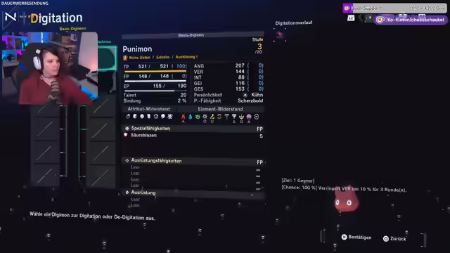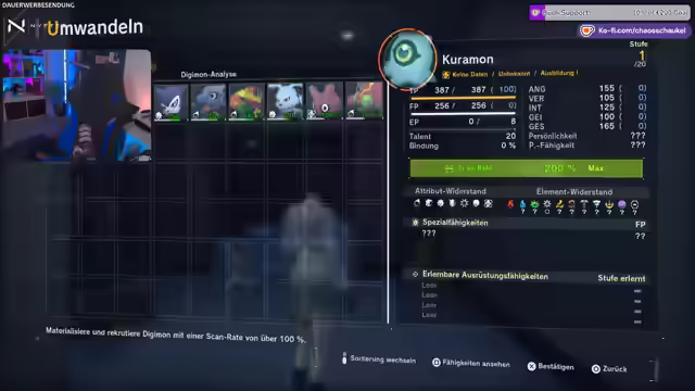 03:06:39Es wird über die Bedeutung von Freundschaft gesprochen und ein Lied in Aussicht gestellt. Ein neues Digimon wird ins Team aufgenommen und es wird gehofft, es behalten zu dürfen. Ein Flugversuch scheitert und ein Gespräch mit einem NPC folgt. Es wird eine Schatzkiste gefunden und über die KP (kritische Punkte) gesprochen. Ein Käfer-Digimon ist bereit zur Umwandlung. Der Adoptivvater, Dr. Yuki, Gründer von Adamas, wird erwähnt. Es wird versucht, ein Digimon zu digitieren, was nach anfänglichen Schwierigkeiten gelingt. Biomon wird als neues Digimon vorgestellt. Die Voraussetzungen für Digitationen werden erläutert, einschließlich erforderlicher Werte und Agentenrang. Es wird erklärt, dass Digimon sich durch Digitation verändern und stärker werden können. Der Prozess der Dedigitation wird ebenfalls erläutert. Es wird betont, wie wichtig es ist, Daten von so vielen Digimon wie möglich zu sammeln, um neue Digitationsergebnisse zu entdecken. Der Streamer äußert sich positiv über das Spiel und stellt fest, dass es süchtig machen könnte.