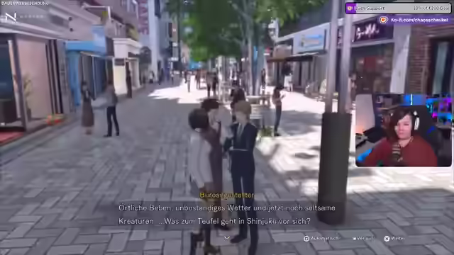 01:24:34Es wird sich über das Outfit der Spielfigur lustig gemacht und die Frage aufgeworfen, warum alle Züge ausfallen und es keine Taxis gibt. Ein seltsamer Dinosaurier wurde in Shinjuku gesichtet. Es gibt drei Kampfmitglieder und einen Platzhalter-Slot. Die U-Bahn ist gesperrt und es wird überlegt, ob die verwaschene Grafik zum Setting gehört. Die Tiefenschärfe wird angepasst. Es wird festgestellt, dass die Maps im Tutorial noch nicht weitläufig sind. An der Mauer der Hoffnung findet ein Protest statt, da die Transportsysteme ausgefallen sind. Das Spiel wurde von einem Community-Mitglied gesponsert, da es sonst zu teuer gewesen wäre. Die Position im Stream wird angepasst, um die Quests nicht zu verdecken. Örtliche Beben, unbeständiges Wetter und seltsame Kreaturen werden erwähnt. Es gibt einen Laden, in dem man später einkaufen gehen kann. Es werden Nachrichten mit wichtigen Informationen an den DigiVice geschickt. Es gibt Schatztruhen und Metamaterialien. Die Leute werden unruhig und eine Straße ist abgesperrt. Die Grafik wird als schön empfunden. Es wird sich gefragt, warum Pokémon grafisch nicht mithalten kann. Das Ziel ist, zu den Ermittlungskoordinaten zu gelangen. Das Navigationssystem wird erklärt. Es gibt Proteste vor der Mauer und die Polizei warnt vor einem großen Beben.