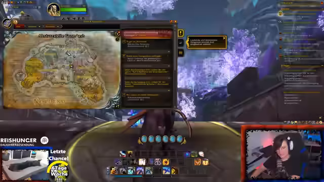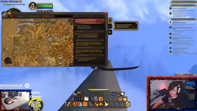 00:59:47Nach einer längeren Vorbereitungsphase beginnt der Stream mit dem World of Warcraft Gameplay. Er betont die positiven Aspekte der Wartungszeiten des Spiels, die meist außerhalb der Streamzeiten liegen. Der Streamer loggt sich mit seinem Magier-Charakter in das Spiel ein, um mit der Community in das Gebiet 'Drachenfeuer' einzutauchen und dort die Quests fortzusetzen. Er ist offen für Tipps und Hinweise der Community zu interessanten Orten, Achievements oder Gegenständen in der Spielumgebung.