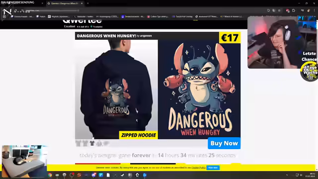 00:37:19Ein Abschnitt des Streams ist persönlichen Dingen gewidmet, wie einem Zelda-Shirt, das der Streamer zugeschickt bekommen hat. Es folgt ein kurzer Austausch über Online-Shops und Ladengeschäfte für Nerd- und Gaming-Kleidung, insbesondere T-Shirts mit besonderen Motiven. Hierbei wird die Qualitäts- und Preisfrage angesprochen, wobei der Streamer persönliche Vorlieben und Erfahrungen teilt.