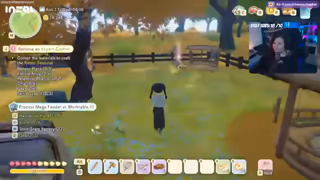 06:21:18Der Tierbestand der Farm wird erweitert durch neue Schaffarben, die als Belohnung erhalten werden. Die Farmstruktur wird überdacht, um die Tiere in definierten Bereichen zu halten und die Weidetrennung zu optimieren. Gleichzeitig wird der Betrieb der automatisierten Sammler für Holz und Ressourcen evaluiert. Es wird erwogen, die Roboter effizienter im Moonwood-Bereich einzusetzen, wo sie auch Bäume fällen könnten, um die Ressourcengewinnung weiter zu verbessern.