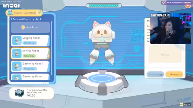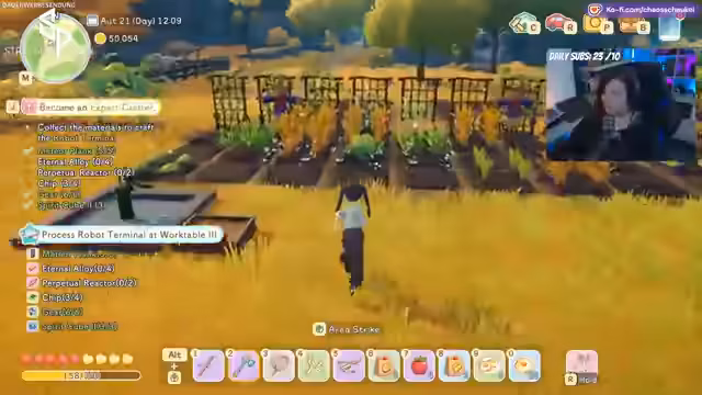 06:04:44Die durch die Quest erhaltenen Roboter werden aktiviert und eingesetzt. Es wird ein Logging-Roboter, ein Gathering-Roboter und ein Minen-Roboter genutzt. Diese können selbstständig Ressourcen wie Holz, Fiber und Mineralien in einer bestimmten Range sammeln. Insbesondere der Holz-Loot kann nun auf der gesamten Insel effizient eingeholt werden. Allerdings wird festgestellt, dass die Roboter nicht das Giessen übernehmen, weshalb die Farmarbeit weiterhin manuell erfolgt.