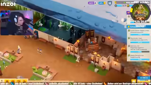 06:04:27Mit dem Fokus auf den bevorstehenden Fantasy-DLC, der am Donnerstag erscheint, konzentriert sich der Streamer darauf, bereits freigeschaltete Elemente optimal zu platzieren. Er versucht, die letzten benötigten Exponate wie eine dritte Ruine und das Besteck zu finden und zu integrieren. Währenddessen werden Spendenstände regelmäßig geleert und der Mangel an Sicherheitspersonal bemängelt. Der Streamer plant, die Map weiter auszubauen, um mehr Sternchen zu erreichen und Dekorationen freizuschalten.