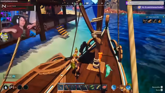 02:07:36Das Schiff gerät in große Gefahr durch ein unvorhergesehenes Update, das das Fahrverhalten und die Umgebung erschwert. Nach einer aufreibenden und chaotischen Fahrt, bei der der Streamer das Schiff vor Untiefen und Gefahren schützen muss, gelingt es der Crew, eine neue, gegnerlose Insel zu erreichen. Dort angekommen, wird ein provisorischer Wiederbelebungsplatz eingerichtet und die Errichtung einer Basis beschlossen, die als sicherer Hafen für zukünftige Erkundungen dienen soll.