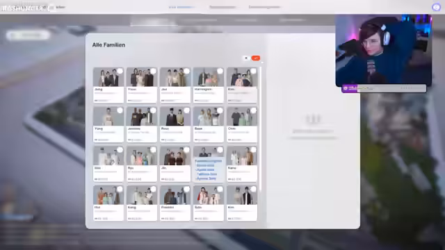 02:55:25Mit dem neuen, stabilen Spielstand begann ein Neustart der Spielwelt, der jedoch bedeutete, dass alle Fortschritte, Beziehungen und der gesamte Haushalt verloren gingen. Der Streamer begann, die ursprünglich geplanten Community-Mitglieder, sogenannte 'Sous', neu in die Welt einzuziehen. Da das Spiel keinen Zoom für die Charakterauswahl bietet, gestaltete sich die Identifizierung schwierig. Dennoch wurde eine Handvoll von ihnen erfolgreich wieder platziert, mit neuen Merkmalen und Outfits, um den Neustart zu gestalten und die Community einzubeziehen.