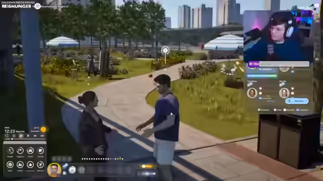 06:01:06Nachdem drei Frauen kennengelernt wurden, wird die Community aktiv in die Handlung einbezogen. Eine Umfrage startet, in der die Zuschauer mitbestimmen sollen, mit welchen der beiden verfügbaren Frauen (Feli und Doni) der Streamer flirten soll. Dies ist ein typisches Element, um den Zuschauern einen Einfluss auf den Spielverlauf zu geben und die Interaktion zu fördern. Die Armut der Charaktere (z.B. keine Essenslieferung möglich) wird als Teil des Realismus erwähnt.