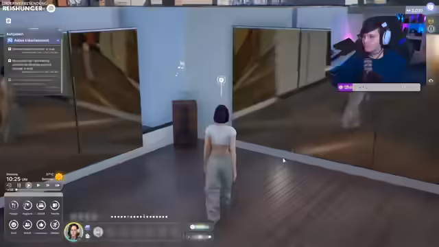 07:08:53Der Streamer begleitet Winnie zur Arbeit als Entertainer. Zuvor müssen tägliche Rituale wie Tanz- und Stimmbildung absolviert werden. Der Besuch der Arbeitsstelle zeigt, dass einige Berufe wie der Anwalt noch nicht aktiv spielbar sind, während man den Entertainer zum Teil begleiten und in den Pausen interagieren kann. Dies verdeutlicht die unterschiedlichen Tiefen der Berufe im Spiel.