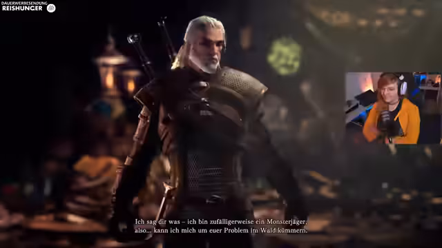 05:33:38Eine blaue Nebenquest aktiviert sich, die als Zusammenarbeit mit der Witcher-Reihe identifiziert wird. Der Spieler übernimmt die Rolle von Geralt von Riva und muss einen Hexer in der Neuen Welt helfen. Die Quest führt in den alten Wald, wo ein Forscher verschwunden ist und seltsame Phänomene wie magiebedingte Wurzeln und aggressive Vögel untersucht werden müssen.