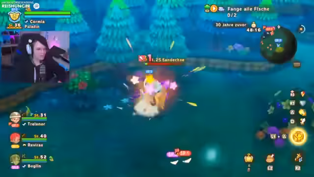 05:13:40Die Spieler planen, ein Item bei dem türkisen Ritter zu vergraben und es nach dem Bosskampf auszugraben. Eine Zeitfrucht soll angebunden werden, und die Spieler haben Angelausrüstung dabei. Sie sammeln verschiedene Blumen, darunter grüne und türkise, und fische sind ein wiederkehrendes Thema. Ein Spezial-Fisch wird erwähnt, und die Spieler sind begeistert vom Anblick von Schildkröten und anderen Tieren.