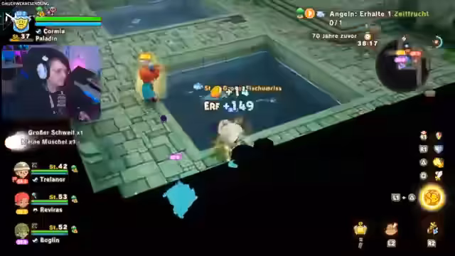00:53:17Der Streamer berichtet über seinen Fortschritt in Fantasy Life, insbesondere dass er die Story abgeschlossen hat und nun im Farm-Modus ist. Er erwähnt, dass er noch viele Dinge erkunden muss, darunter Höhlen und Kisten, und dass ihm elf Ulklinge fehlen. Er spricht über seine Pläne für den weiteren Spielverlauf, einschließlich des Levelns seiner Berufe und Erkundens neuer Gebiete.