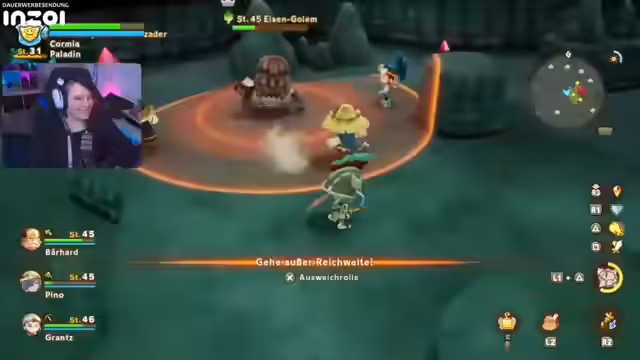 03:54:34Nachdem der Spieler und seine Gruppe mehrere Rüstungssets erhalten haben, stehen sie nun dem Endgegner Pragil auf der höchsten Stufe (Profistufe, Level 70) gegenüber. Der Kampf erweist sich als äußerst schwierig, da Pragil starke Ultimate-Angriffe einsetzt und sich selbst mit Schutzbuffs umgibt. Die Gruppe kämpft verbissen und nutzt Tränke und Fähigkeiten strategisch, um den Boss zu bezwingen.