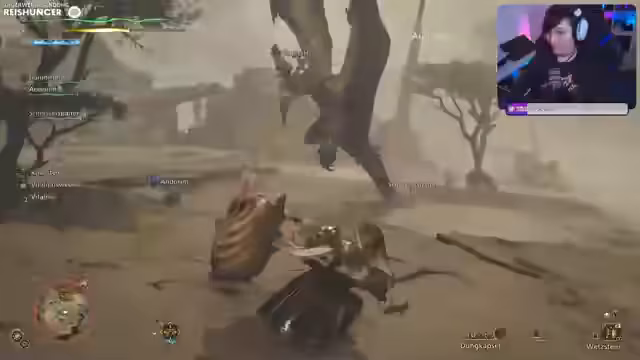 01:57:01Der Streamer vergleicht das Solo- mit dem Multiplayer-Erlebnis in Monster Hunter Wilds und stellt fest, dass es im Multiplayer geiler und wilder ist. Er erwähnt, dass er meistens in einer Viergruppe unterwegs ist und mit Palicos Spaß hat, kritisiert aber, dass man hier die Gadgets nicht auswählen kann. Er zeigt sich stolz auf seine ersten K.O.s nach der Story.