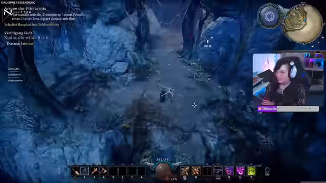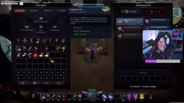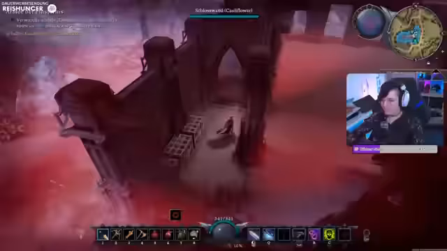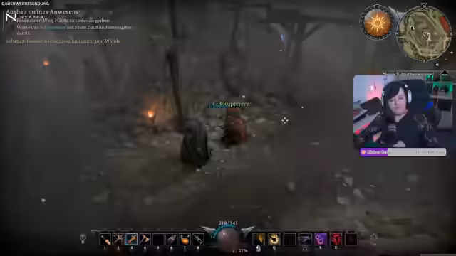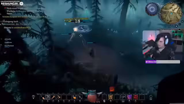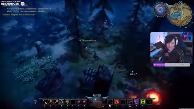 02:13:48Zu Beginn erkundet der Streamer das Gebiet des Eichenschleierwalds, um die ersten Bosse zu jagen und Ressourcen wie Wolfsfell, Rosen und Steinchen zu sammeln. Es kommt zu heftigen Kämpfen mit Wölfen und dem Boss Todeskopf, bei denen der Schaden und die besonderen Fähigkeiten der Gegner eine Herausforderung darstellen. Der Streamer stellt fest, dass er sich im Gebiet kaum noch auskennt und die Boss-Positionen vergessen hat.