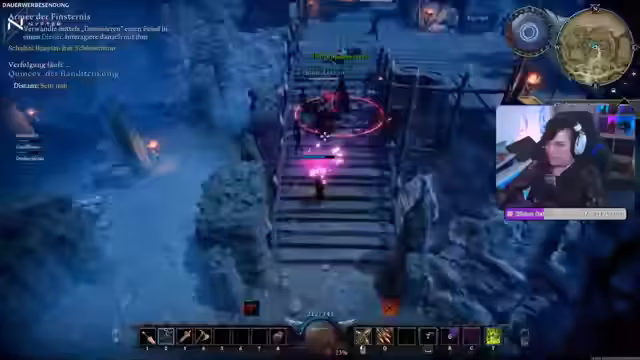 09:40:35Der Angriff auf den Boss Quincy beginnt. Die Gruppe trifft sich vor der Festung und koordiniert ihre Aktionen. Es wird auf Mitspieler gewartet, die noch nicht am Portal sind. Während des Kampfes gegen den Banditenkönig kommt es zu mehreren Toden, aber der Boss wird letztendlich besiegt. Anschließend wird der Kampf gegen Polora, die als besonders fies und nervig gilt, geplant. Der Streamer gibt Tipps zur Taktik und warnt vor den heilenden Feen des Bosses.