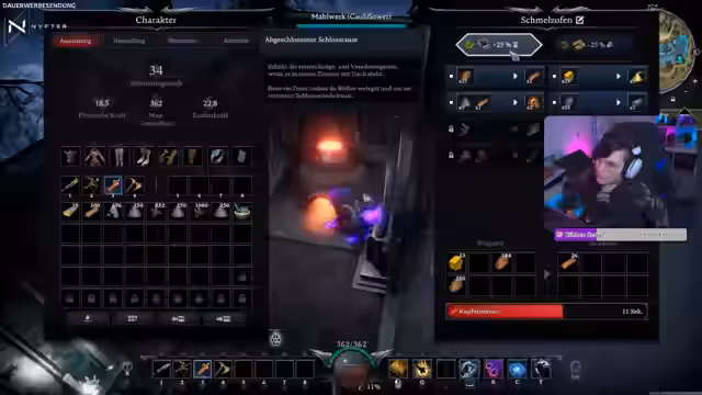 05:40:12Zu Beginn des Streamings wird intensiv Ressourcenfarmen betrieben. Kupfer und Wettsteine werden in der Mine gesammelt, um die Inventare zu füllen und die Werkbänke zu versorgen. Gleichzeitig wird der Ausbau der Basis vorangetrieben, indem gefundene Pflanzen und weitere Ressourcen zur Weiterverarbeitung eingelagert werden. Der Fokus liegt darauf, die notwendigen Materialien für die Rezepte der Forschungswerkbänke sowie für den Bau von neuen Räumen und Einrichtungsgegenständen zu beschaffen.