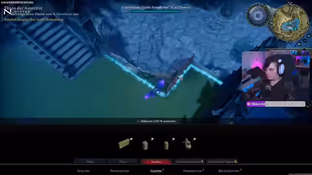 12:21:47Nach dem erfolgreichen Bosskampf wird mit dem Bau einer Basis im Fabianwald fortgesetzt. Es werden verschiedene Bauteile wie Pflanzbottiche, Steinmassen und Bodenbeläge platziert. Die Base wird mit vielen Deko-Elementen wie Statuen, Vorhängen und Kronleuchtern gestaltet. Die Funktionen von Clans, wie der gemeinsame Rezept-Tisch, werden vorgeführt. Der Streamer plant, den Thron für den zweiten Diener zu bauen.