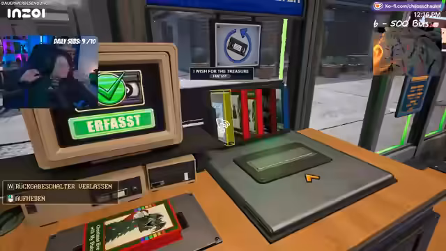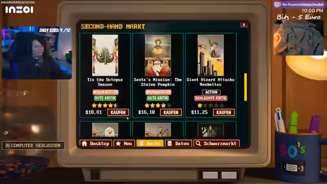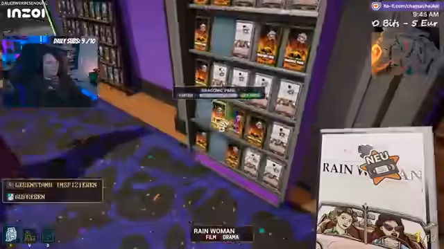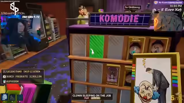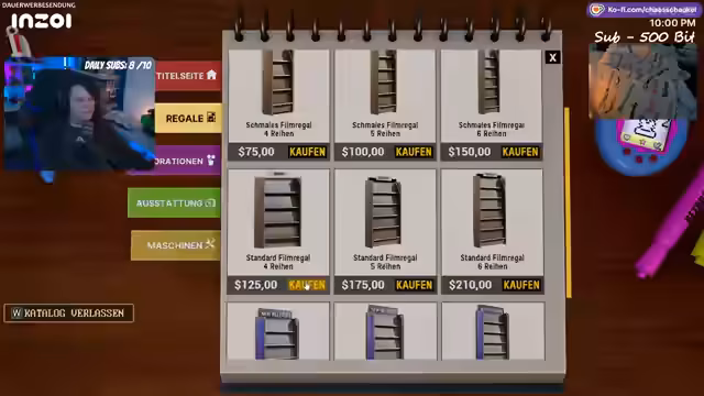 04:07:07Der Stream beginnt mit dem Ziel, 50 Dollar zu erwirtschaften, um eine Mitarbeiterin zu bezahlen und einem Streik vorzubeugen. Um dieses Ziel zu erreichen, werden Flyer verteilt und die Kasse besetzt. Gleichzeitig findet eine Inventur statt, bei der diverse Filmgenres wie Action, Weihnachts- und Erotikfilme besprochen werden. Es wird eine dringende Notwendigkeit festgestellt, die Kasse zu füllen, und es wird erwähnt, dass noch zwei Zeit für das "Geldgrinden" bleiben, bevor der nächste Film erscheint. Der Fokus liegt auf dem schnellen Erzielen von Einnahmen.