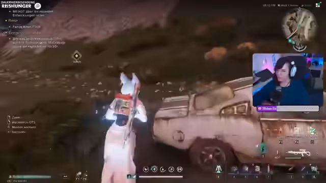 03:02:14Der Streamer warnt vor dem Leerwerden des Solarbohrers und rät zur Inventarverwaltung, um den Balken zu überwachen. Es werden verschiedene Ressourcen wie Eisen, Aluminium, Orangen und Gemüse gelootet. Es kommt zu einem unvorhergesehenen Angriff durch einen Elite-Gegner, der zum schnellen Tod führt. Danach wird die Abschalt-Quest abgeschlossen und eine Nebenquest in der Nähe angenommen. Die Erkundung weiterer Orte wird als Nächstes geplant.