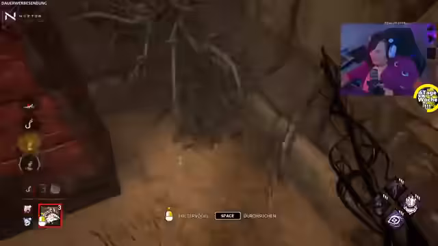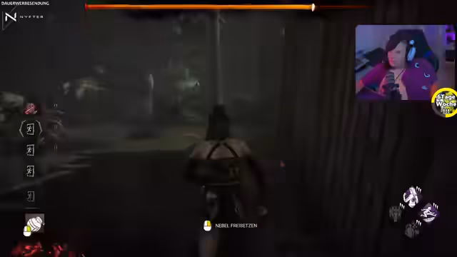 13:54:00Der Streamer kämpft als Überlebender Claudette gegen den 'Ghoul'. Er merkt, dass der Killer neu in der Rolle ist, aber bereits gezielte Aktionen durchführt. Der Streamer hat Angst und ist auf die Sinne angewiesen, da er die visuelle Markierung des Killers als störend empfindet. Trotzdem gelingt es ihm, mit Hilfe eines Mitspielers zu überleben und einen Genrator zu reparieren, was als Teamerfolg gewertet wird.
