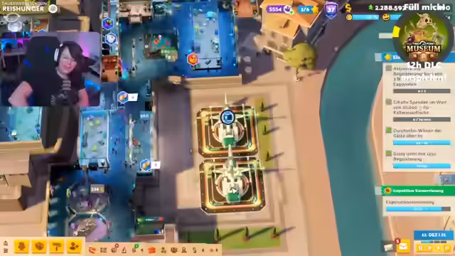 01:01:46Der Streamer steht vor der Herausforderung, die dritte Ruine für sein Museum unterzubringen, deren Platzierung er noch nicht gelöst hat. Er beginnt mit einer umfassenden Organisation der Exponate, insbesondere der Landtischen Artefakte, um die Begeisterungsbonus-Quest zu erfüllen. Gleichzeitig muss er auf die spezifischen Wünsche der Mitarbeiter, wie die Nähe zu bestimmten Objekten, eingehen, während er versucht, das Museum optisch ansprechend und funktional zu gestalten und freien Platz zu schaffen.