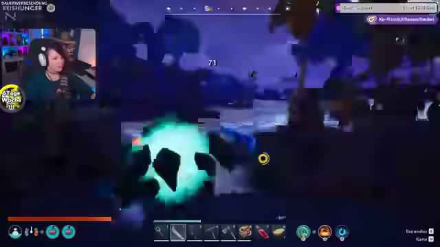 03:25:21Die Reise ins dritte Biom beginnt, und die Gruppe muss sich von einem Turm zum nächsten bewegen, um die Tiefe zu durchqueren. Teamwork ist gefragt, da die Kreaturen direkt von Anfang an auftauchen. Es wird auf die Navigation und Reparatur des Schiffs geachtet. Die Streamerin steht im Kontakt mit dem Support wegen zerkratzter Schlüsselanhänger. Es wird über die Gefahren und Hindernisse in der Tiefe gesprochen. Das neue Gebiet wird erreicht, und es wird festgestellt, dass es ein großes Verderbnisgebiet gibt. Die Umgebung wird erkundet, und es werden neue Tierarten entdeckt. Die Streamerin loggt sich kurz aus, um einen Musik-Bug zu beheben. Neue Gegner mit Level 18 werden entdeckt, und es wird auf Giftwolken geachtet. Es wird nach einem ruhigen Gebiet für die Basis gesucht. Neue Ressourcen wie Dornenrankendorn und Dornenfrucht werden gefunden. Ein Teleporter wird platziert, um Ressourcen von drüben zu holen. Der Bau der Basis beginnt mit normalem Holz.