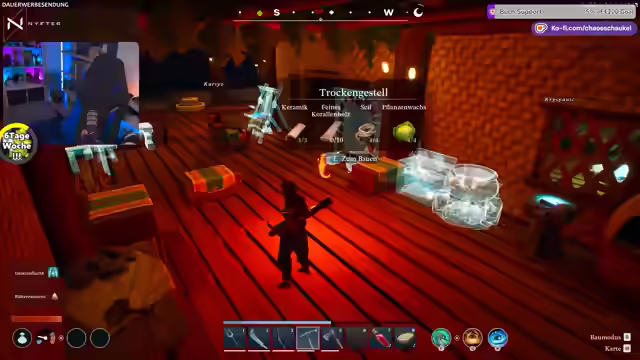 04:18:09Es werden Korallenholz und andere Ressourcen gesammelt, um Werkbänke fertigzustellen. Ein Zuschauer spendet einen Sub, und es wird über neue Ressourcen in der neuen Map gesprochen. Die Basis läuft jetzt besser, da alles gebaut wurde. Es wird über die Notwendigkeit von Lehm und Steinchen gesprochen, und die Community wird um Berichte über die Serverleistung gebeten. Mana-Staub wird hergestellt, und Erze werden in Kisten zwischen Schmiede und Schmelzofen einsortiert. Es wird eine neue Ressource entdeckt, Blumenblüte. Der Windvogel im Spiel wird als knuffig beschrieben. Es werden noch Schafsteine und Holzbretter für die Werkbänke benötigt. Ein Zuschauer fragt nach Leder und Alchemie, und es wird erklärt, wo diese zu finden sind. Das Erkunden der neuen Gebiete mit den neuen Ressourcen und Gegnern wird als cool empfunden. Es werden Jäger-Maskenfragmente und andere neue Ressourcen gefunden. Es wird überlegt, ob man nach dem Essen ein bisschen erkunden geht, um neue Ressourcen und Gegner zu finden. Die Beleuchtung in den Häusern wird als gemütlich empfunden. Das Surfbrett und die Gleitschirme können an der Mana-Werkbank hergestellt werden.
