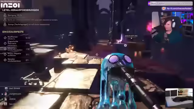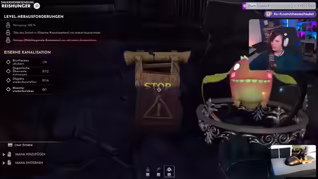 06:23:08Das Team betritt den ersten Dungeon und erkundet die Umgebung. Es werden verschiedene Aufgaben erledigt, wie das Aufheben von Gegenständen, das Füttern einer Kiste und das Reinigen von Blutflecken. Die Streamerinnen kommunizieren und helfen sich gegenseitig, um die Herausforderungen zu meistern. Es wird festgestellt, dass der Scanner hilfreich ist, um versteckte Gegenstände und Blutflecken zu finden. Es gibt auch humorvolle Momente, wie z.B. wenn eine der Streamerinnen versehentlich eine Katze füttert oder von einem Blob gefressen wird. Es wird über die Effektivität verschiedener Werkzeuge diskutiert, wie z.B. des Wischmops und des Scanners. Es wird festgestellt, dass Teamwork entscheidend ist, um die Dungeons erfolgreich zu reinigen.