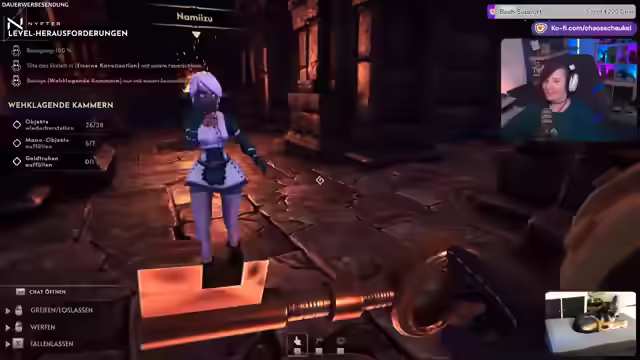 10:16:47Die Gruppe hat den Hebel gefunden und platziert. Es wird diskutiert, ob das Mana-Objekt und die Goldtruhe vollständig aufgefüllt sind. Ein Spieler aktiviert einen Mechanismus, ohne sich töten zu lassen. Die Gruppe bringt die Eier zum Drachen und platziert sie vorsichtig hinter ihm. Die Spieler reinigen den Bereich um den Drachen von Blutflecken. Ein Spieler entdeckt eine Treppe hinter dem Nest des Drachen. Die Gruppe transportiert weitere Gegenstände, darunter einen Stuhl und ein Fass, nach oben. Die Spieler stellen fest, dass der Drache erwacht ist und sich bewegt. Die Gruppe hat es geschafft, den Drachen zu aktivieren und das Level abzuschließen. Es wird ein Schlüssel gefunden und die Fallen werden wieder aktiviert. Die Gruppe bringt eine Truhe zu einem bestimmten Ort und aktiviert die Brücke. Die Spieler aktivieren die Drachen auf beiden Seiten. Die Gruppe schließt den Bereich 'Schritte der Leere' ab. Die Gruppe sucht nach einem fehlenden Objekt im Hauptgebiet, um den Dungeon vollständig abzuschließen. Nach langer Suche wird das fehlende Objekt gefunden und der Dungeon erfolgreich abgeschlossen.