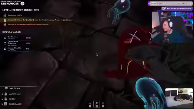 09:20:13Es wird über den furchtbaren Blutdurchsturmten Gang gesprochen. Die Mimik wird gebeten, sich umzudrehen, während die Gruppe kurz AFK ist. Eine Spende wird erhalten, die die Gruppe dem Spendenziel näherbringt. Eine Pflanze wird im ersten Raum gefunden, und eine zweite im Raum mit den Alchemie-Tischen. Die Gruppe wirft Gegenstände herunter und findet einen Schlüssel. Es gibt viele Fallen und die goldene Kiste. Die Gruppe wirft Teddy-Items in den Altarraum. Die Gruppe ist in dem dunklen Raum, wo es eine Wandfalle gab. Die Mimik kommt wieder auf den Weg zu der Gruppe zurück. Die Gruppe aktiviert die Blogs und wirft sich gegenseitig Items zu. Die goldenen Gegenstände müssen weggebracht werden, und die Gruppe muss zum Eingang zurück, wo die Tür war. Es wird über Fallen gesprochen und darüber, dass jemand daraufgetreten ist. Die Gruppe wirft Gegenstände hinter sich und reinigt alles. Es wird ein goldenes Rohr gefunden und eine Treppe entdeckt. Die Gruppe stellt fest, dass das Spiel mit einer Gruppe Spaß macht und bis zu vier Leute gespielt werden kann.