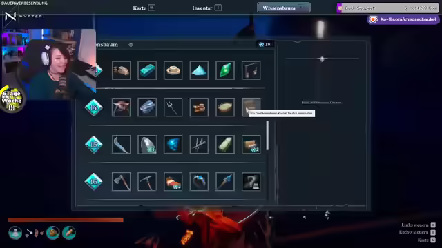 03:14:14Die Person freut sich über die Zusammenarbeit mit Ludivon als Management, da andere Agenturen hohe monatliche Gebühren verlangten. Es wird erwähnt, dass Autorenglück möglicherweise wieder existiert. Die Person bereitet sich darauf vor, ins Spiel zurückzukehren und hat bereits 1,5 Liter Wasser und fast 1 Liter Milch getrunken. Ein neues Item wird vorgestellt, das Verderbnis reduziert. Es wird über die Navigation im neuen Gebiet diskutiert, wobei die Zuschauer helfen, den Weg zu finden. Die Streamerin zieht die Kette an, die vor Verderbnis schützt und markiert die Route zu den Türmchen. Es wird über den Kundensupport für die Schlüsselanhänger gesprochen. Eine Spielerin verlässt das Team wegen Kampfzwerg. Die Reise ins dritte Biom beginnt, und die Person ist gespannt auf die Herausforderungen und die Umgebung. Die Community wird gelobt, weil sie niemanden hasst. Es wird über Skill-Verbesserungen und Rezepte gesprochen. Die Person isst einen Muffin, bevor es in die Tiefe geht und Paniquist übernimmt die Reparaturarbeiten.