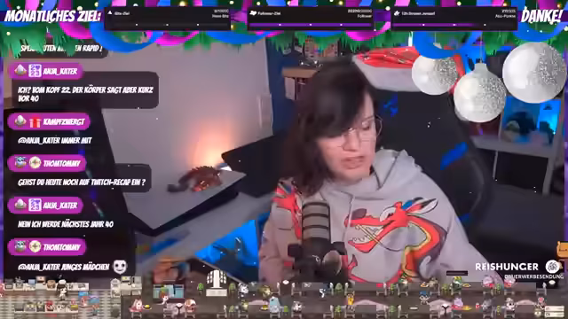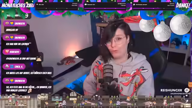 00:31:32Der Streamer berichtet von der privaten Weihnachtsvorbereitung, wie dem Aufstellen eines Baums und dem Wechsel der Lichter zu blauen und lila Tönen. Der Stream selbst wird ebenfalls weihnachtlich gestaltet: ein neues Overlay mit Schneeflocken, ein Weihnachtsmütze-Emote und ein Adventskalender von Reishunger sind aktiv. Die Musik wird bewusst nur an Adventssonntagen gespielt, um eine Überreizung zu vermeiden.