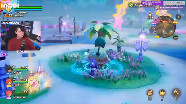 02:45:01Die Spieler entdecken neue Rezepte und Upgrades für ihre Insel, wie neue Wege und die Möglichkeit, mehr Wohnhäuser zu platzieren. Sie diskutieren die Anzeige aller Rezepte, auch der noch nicht freigeschalteten, und planen, diese gezielt zu nutzen. Der Abschnitt endet mit der Vorbereitung auf einen weiteren Bosskampf und der Aufforderung an weitere Spieler, sich anzumelden, um die Gruppe zu ergänzen.