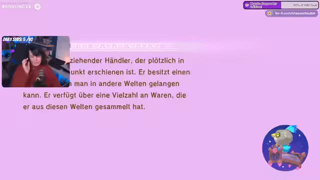 01:15:05Der dunkle Händler 'Humbert' tritt auf und teleportiert Spieler in die Albtraumwelt 'Dösalia'. Dort startet man auf Stufe 1 ohne Ausrüstung und muss durch Kämpfe und Sammeln von Gegenständen stärker werden. Händler tauscht gesammelte Traumwelt-Objekte gegen Traumpunkte ein. Warnung vor dem Rand des Bewusstseins, der instabile Zonen mit höheren Risiken darstellt. Ziel ist das Besiegen eines Boss-Monsters unter Zeitdruck.
