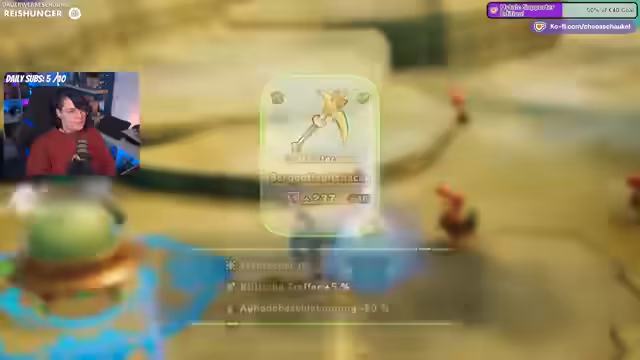 05:05:20Der Spieler erhält einen Glänzstein zur Verbesserung von Waffen und Lebenswerkzeugen. Es werden verschiedene Gegenstände wie eine Astralkapuze und eine teure Tischlampe diskutiert. Die Entscheidung fällt, junge Bäume und andere Ressourcen mitzunehmen. Neue Frisuren werden als langweilig bewertet, daher werden Rüstungsgegenstände bevorzugt. Ein Magma-Drache und schwarze Sandalen werden erwähnt, wobei der Fokus auf dem Sammeln nützlicher Items liegt.