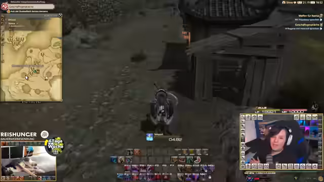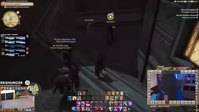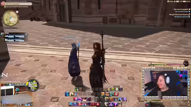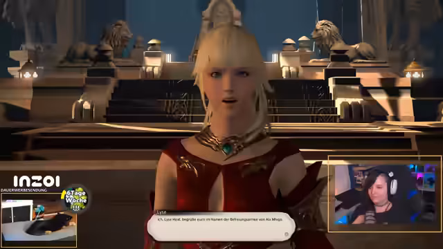 03:46:40Der Stream beginnt mit einem nostalgischen Gespräch über alte Spiele, insbesondere die 'Adventure'-Reihe, wobei sich der Streamer unsicher ist, ob es sich um Teil 1 oder 2 handelt, den er gespielt hat. Es folgt eine unerwartete Wendung zur Fantasy-Welt Final Fantasy XIV, als im Chat eine Warnung über eine bevorstehende Versammlung erscheint. Der Streamer und seine Mitspieler werden als Gesandte eines Stammes namens Ananta zu einer Verhandlung im Palast von Alamigo eingeladen, die jedoch von einem gegnerischen Stamm, den Qualianern, sabotiert wird. Die Situation eskaliert, als die Qualianer eine Primae-Gottheit namens Lakshmi beschwören und die Wachen besessen machen.