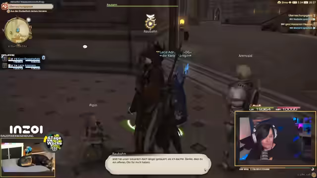 02:55:11Es wird über die eigene Streaming-Gewohnheit gesprochen. Beide Streamer treffen sich einmal pro Woche, um Final Fantasy 14 zu spielen. Dies wurde in der Vergangenheit öfter gemacht, aber durch real-life Verpflichtungen hat sich das reduziert. Die Rückschau zeigt eine Zeit, in der sie 16-Stunden-Streams absolviert und bis zu 60 Quests pro Session geschafft haben. Der Streamer äußert, dass er sich zwingen muss, privat zu spielen, damit sich das Abo lohnt.